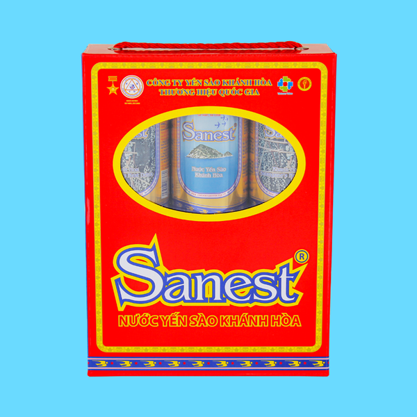 - Trọng lượng sản phẩm (g) và kích thước sản phẩm: Nước Yến sào Khánh Hòa Sanest hộp 6 lon 190ml: 1,35 kg; D x R x C = 16,5 x 5,6 x 22,2 (cm).